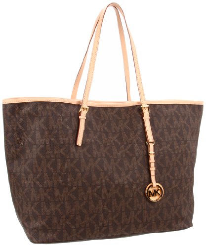 Save Michael Kors Jet Set Travel Medium PVC Logo Tote Brown
